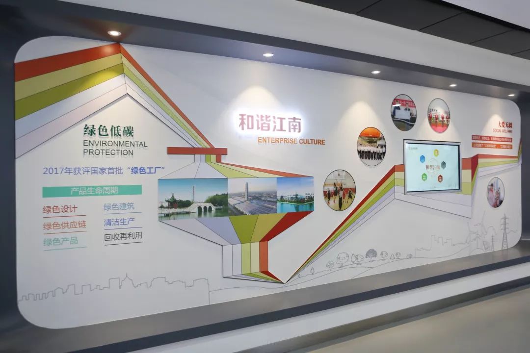 一塊以江南電纜logo為設(shè)計(jì)原型的歷程墻,五大發(fā)展節(jié)點(diǎn),見證著江南一步一步從名不經(jīng)傳的鄉(xiāng)鎮(zhèn)企業(yè)到成為中國電纜行業(yè)翹楚的歷程。