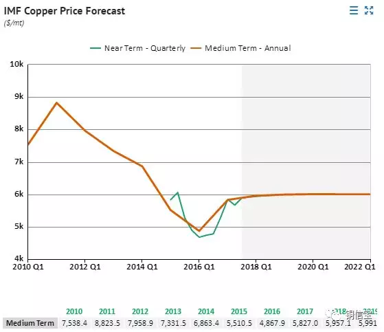 世界貨幣基金組織(IMF)7月預(yù)測(cè)銅價(jià)2019年均價(jià)位5991美元/噸。