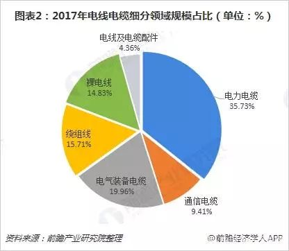 從細分產(chǎn)品來看,電力電纜仍是行業(yè)重要的細分領(lǐng)域,2017年電力電纜產(chǎn)量達到4933.60萬公里,當(dāng)年通信電纜的產(chǎn)量在5500萬對千米左右,2017年電氣裝備電纜的年產(chǎn)值達到3160.39億元。